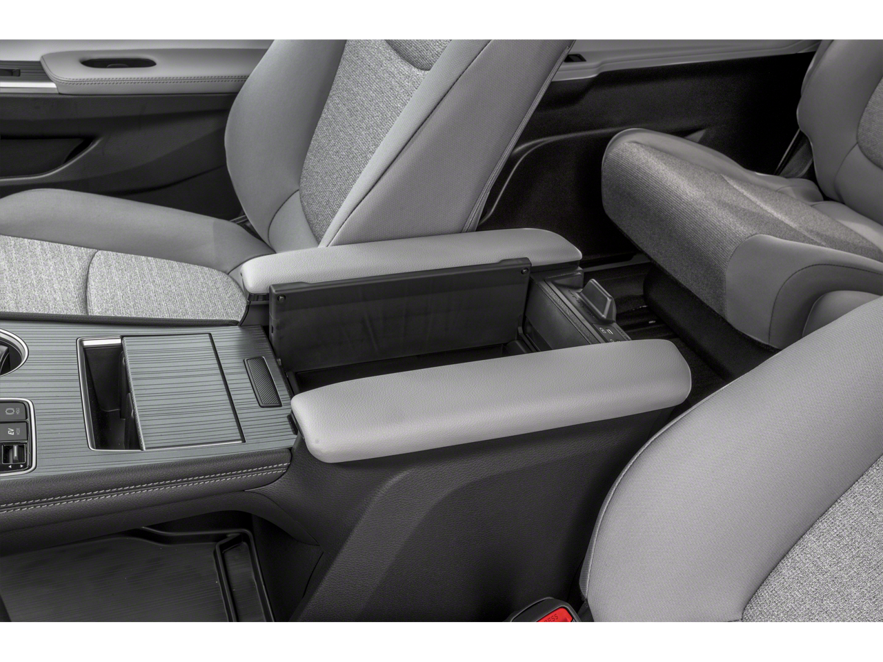 - Fixed center console, pass-through, illuminated storage compartment, and four cup holders