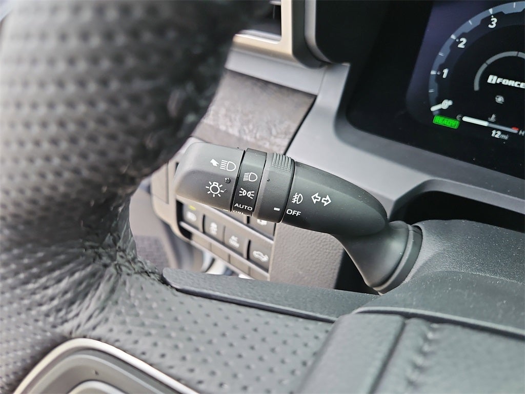 - Leather-trimmed manual tilt/telescopic heated steering wheel with phone, audio, display/infotainment, and Driver Assist controls